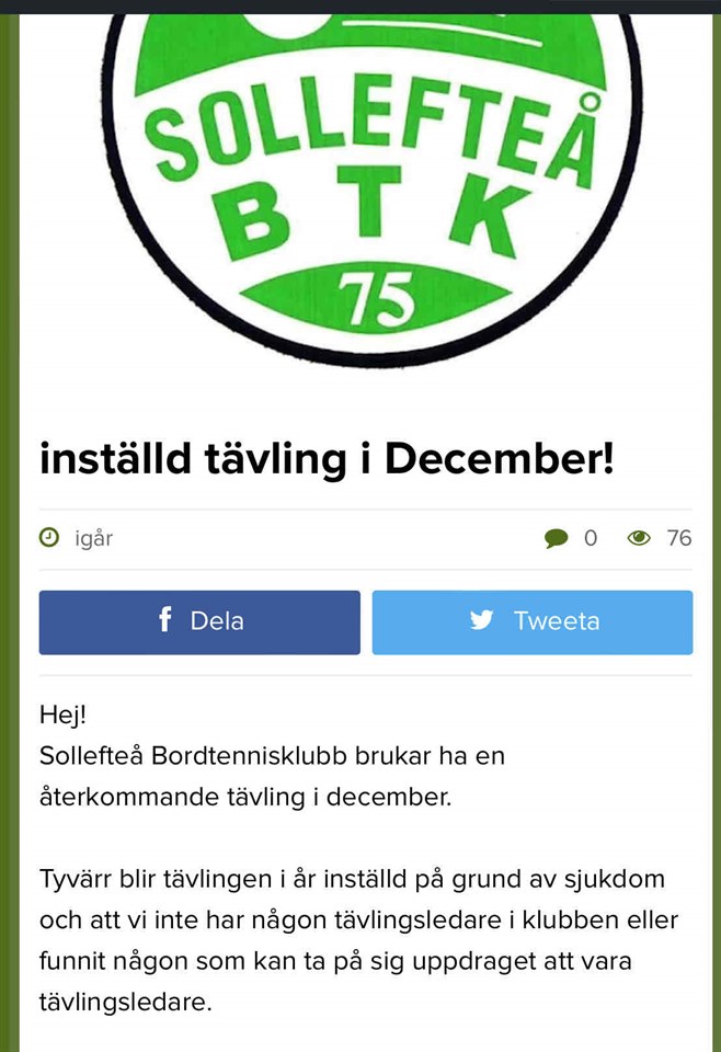 Tävlingen i Sollefteå i december är inställd. Norra BTK Örnsköldsvik 27 nov 2023 0kommentarer